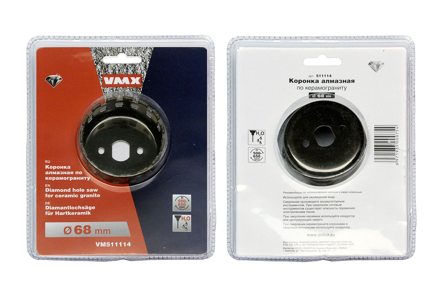 Коронка алмазная по керамограниту 68 мм VMX (VM511114)