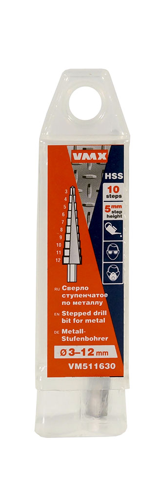 Сверло ступенчатое по металлу (3-12 мм; 10 ступеней; шаг 1 мм; ход 5 мм) VMX (511630)