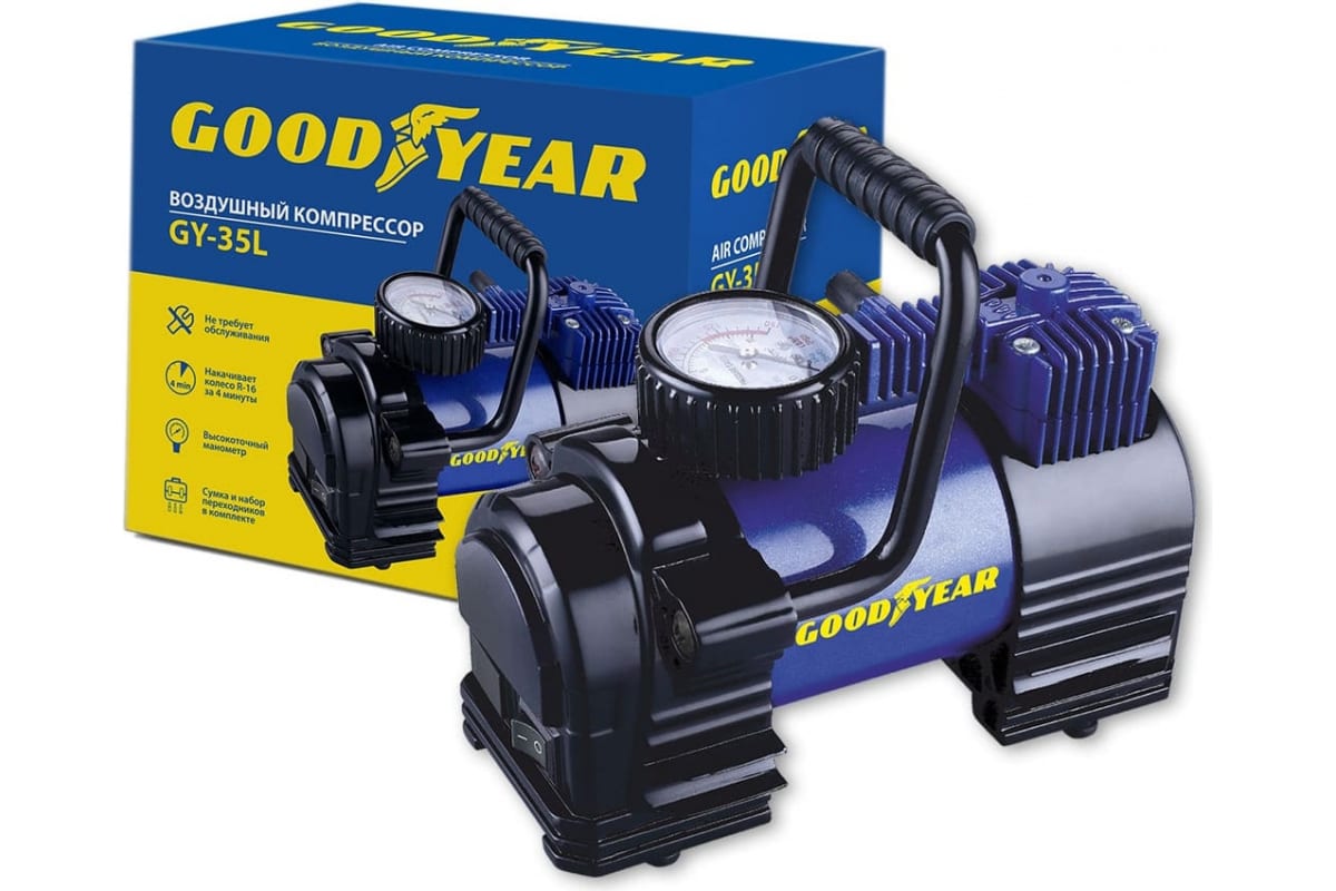 • Воздушный компрессор Goodyear GY-35L предназначается для накачивания автомобильных шин за максимально короткое время.