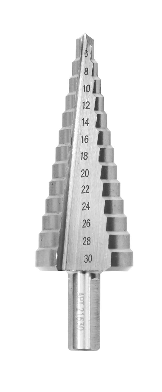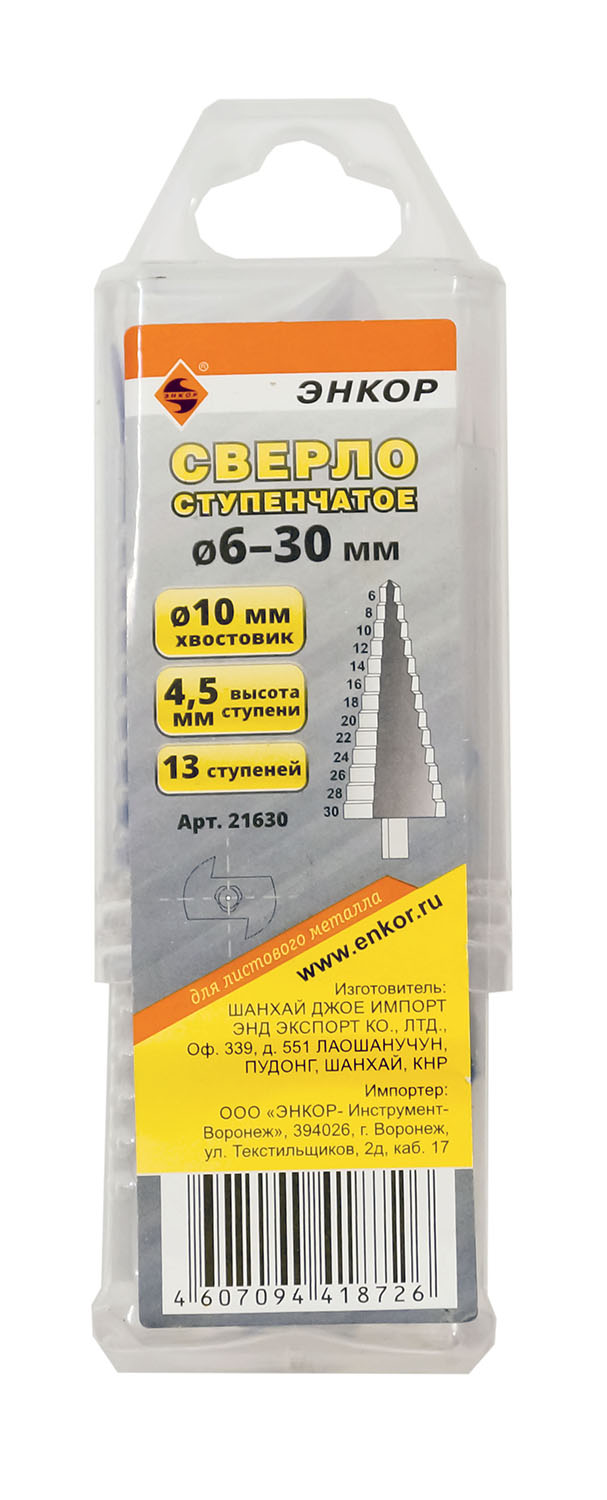 Сверло ступенчатое (6-30 мм; 13 ступеней; шаг 2 мм; ход 4.5 мм) по металлу Энкор (21630)