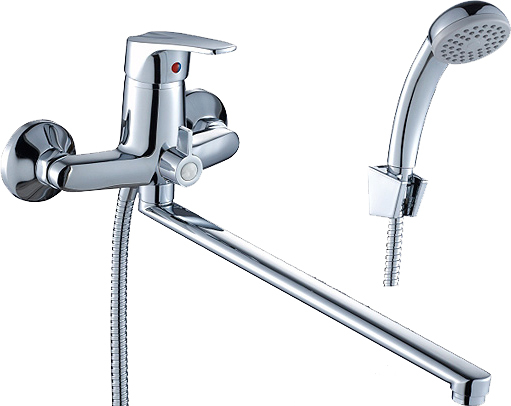 Поток с излива на душ переводится с помощью флажкового дивертора.