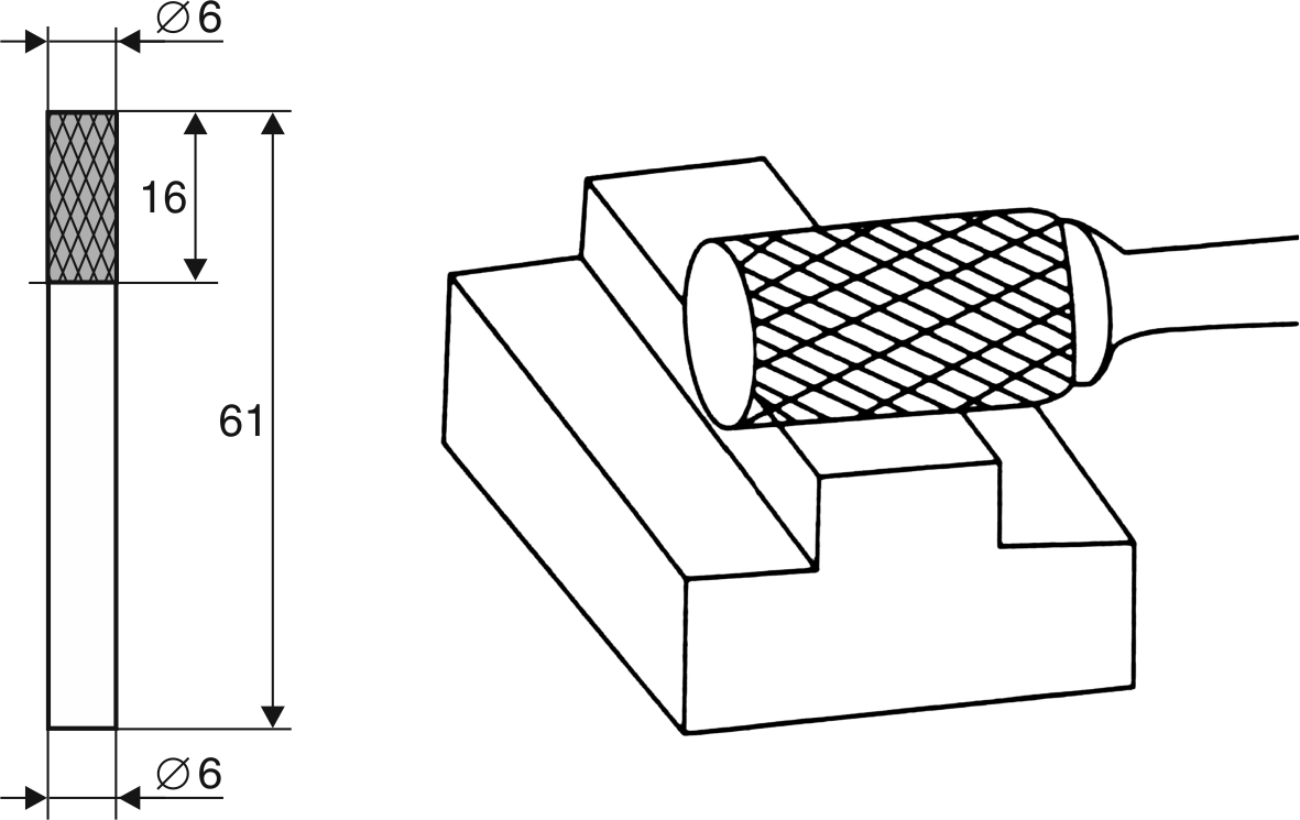 Высокую стойкость инструмента обеспечивает рабочая часть из твердого сплава, которая припаяна к стальному хвостовику диаметром 6 мм.