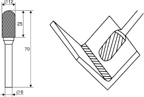 Высокую стойкость инструмента обеспечивает рабочая часть из твердого сплава, которая припаяна к стальному хвостовику диаметром 6 мм.