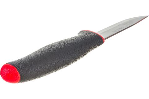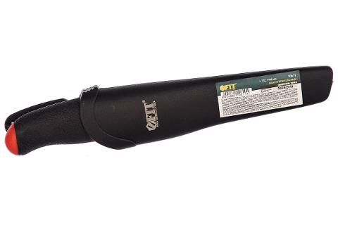 Нож оснащен прорезиненной рукояткой.