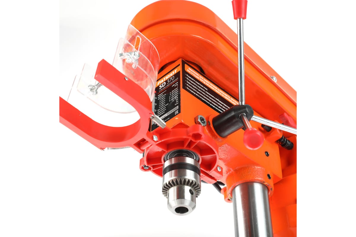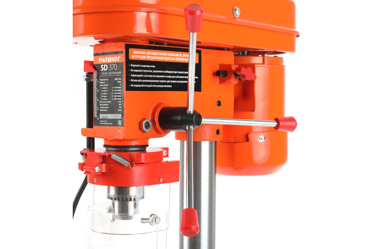 Сверлильный станок PATRIOT SD 370 160301370 используется в столярном производстве или в частных мастерских для сверления отверстий в металле или древесине.
