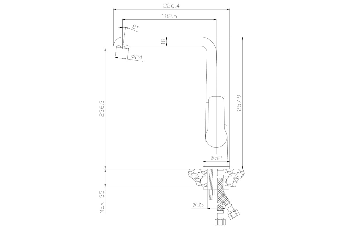 • Пластиковый аэратор с изменяемым углом подачи воды;