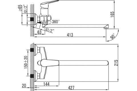 Смеситель для ванны IDDIS длинным изливом с керамическим дивертором TORSBL2i10WA
