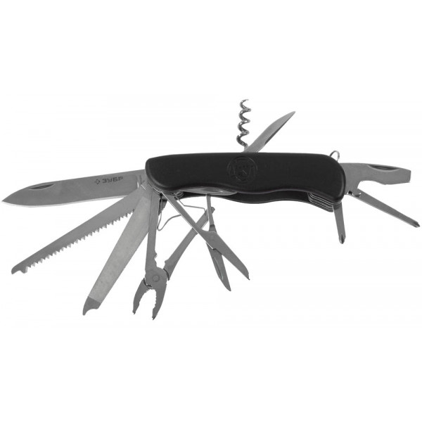 • Складной многофункциональный нож 12 в 1 ЗУБР ЭКСПЕРТ 47792 привлекает широким спектром своих возможностей.