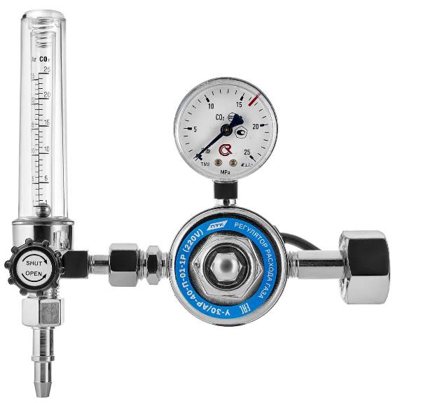 Регулятор расхода газа с подогревателем У-30/АР-40-П-01-1Р (220V) предназначен для понижения газа и автоматического поддержания постоянным заданного расхода при питании постов и установок в среде защитных газов.