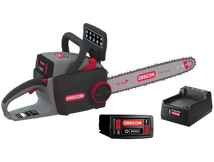 Самозатачивающаяся аккумуляторная цепная пила OREGON CS300 609468 с двигателем на постоянных магнитах предназначена для валки небольших деревьев и разрезания бревен.