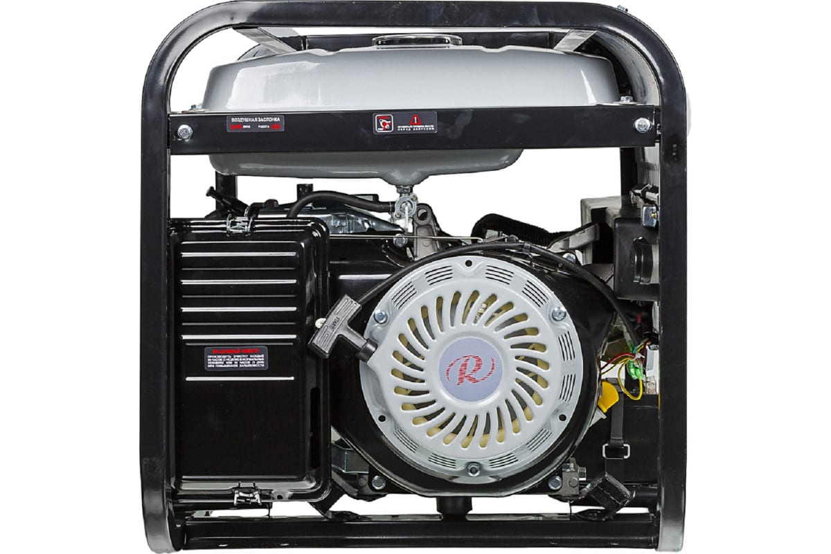 Генератор имеет компактный корпус с металлической рамой, которая защищает от вибраций во время работы.