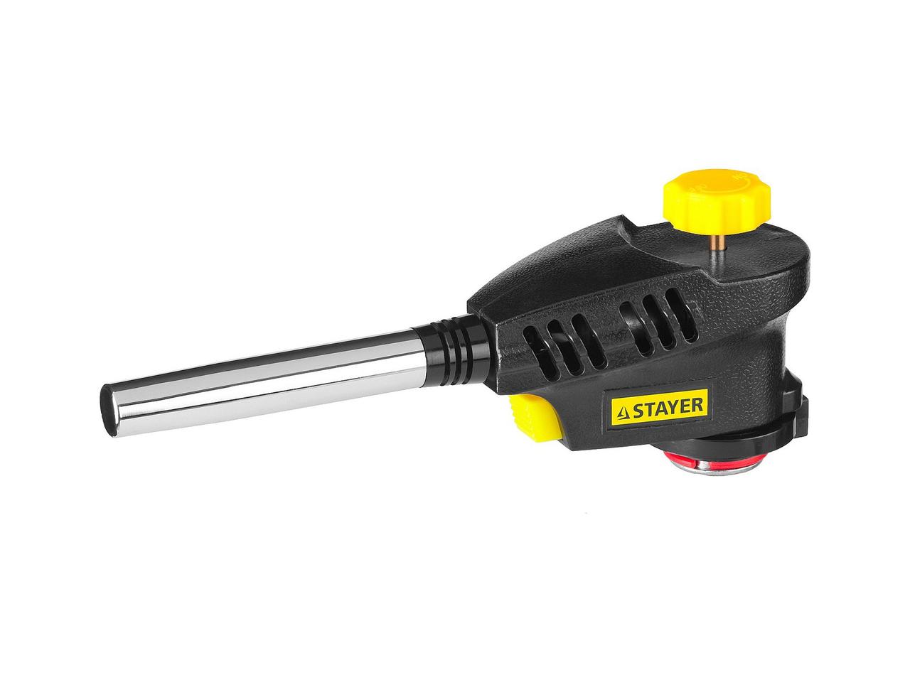 • Газовая горелка STAYER ProTerm на баллон, с пьезоподжигом, 1300С 55582 имеет тонкое фокусированное пламя.