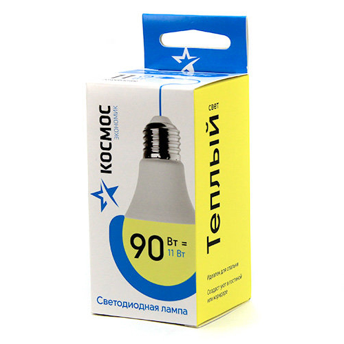 • Светодиодная лампа КОСМОС, LED A60 11Вт 220В E27 3000К 441265 LkecLED11wA60E2730 применяется для общего освещения.