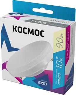 Светодиодная лампа КОСМОС 10Вт GX53 220В 3000K 482446 Lksm_LED10wGX5330C является аналогом лампы накаливания 90 Вт.